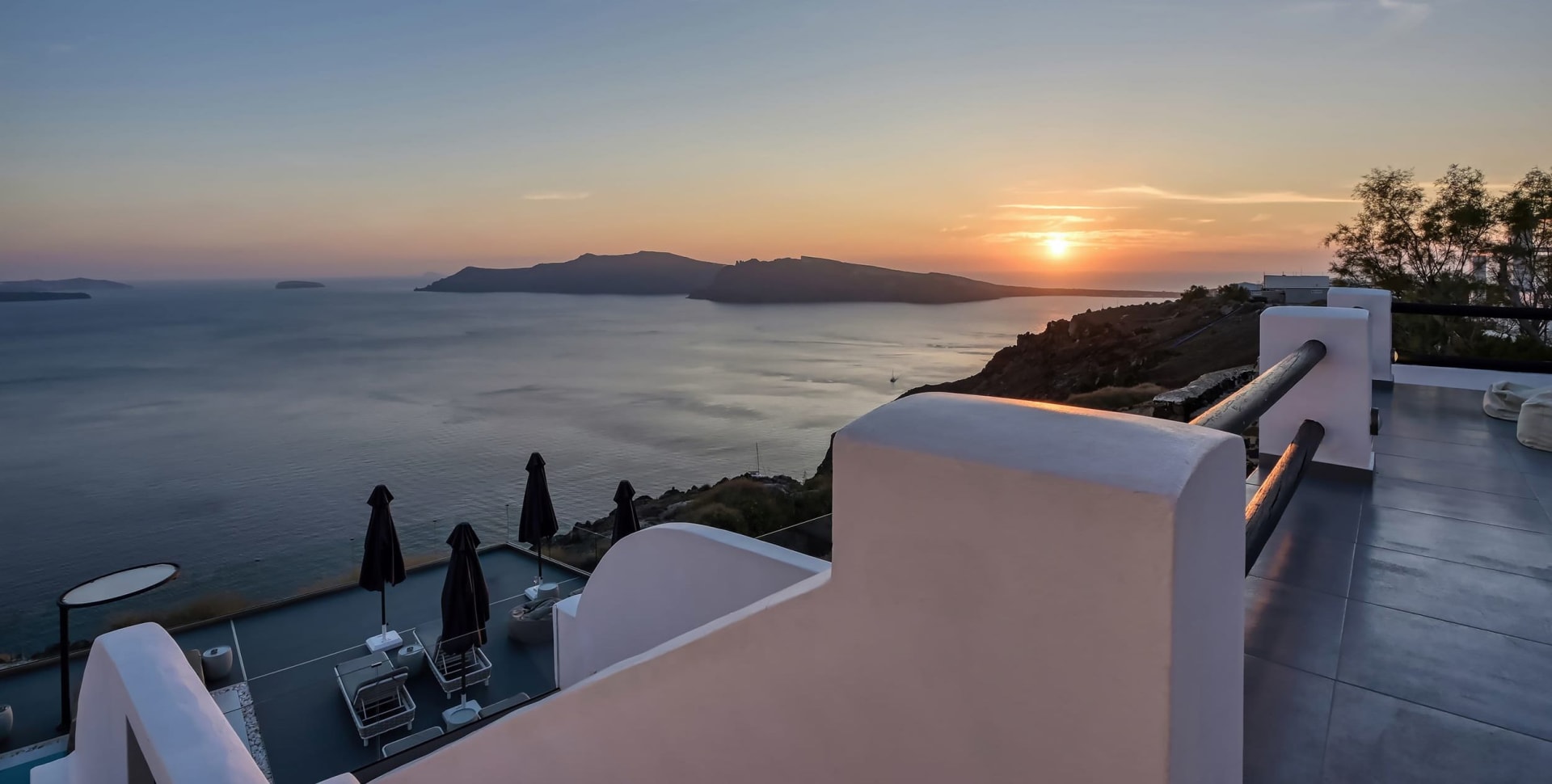 As sunset approaches, the terrace transforms into a natural spectacle. Vibrant hues of gold, amber, and rose cascade across the sky, reflecting softly upon the water and painting the caldera in ethereal tones. Watch the sun descend in a blaze of warm golds and soft pinks, cocktails in hand, snacks at your side, and allow the fleeting beauty of the sunset to wrap around you. Each sip, each bite, each glance becomes a small ritual of indulgence — a celebration of light, flavor, and the incomparable magic of the island. It’s a breathtaking display that turns each evening into a memory suspended between dream and reality.